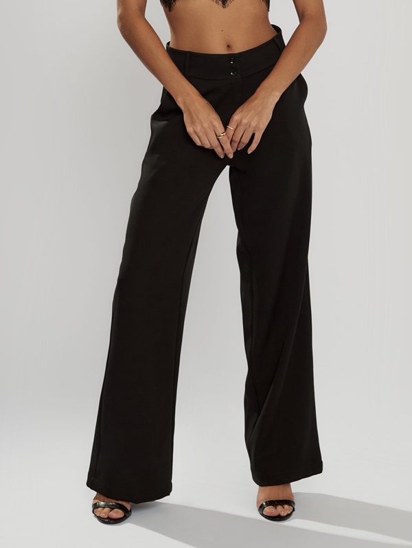 Calça Pantalona Elegance Produzido em tecido alfaiataria Modelagem longa com cintura alta Possui fecho e bolsos laterais Possui plaquinha de metal personalizada