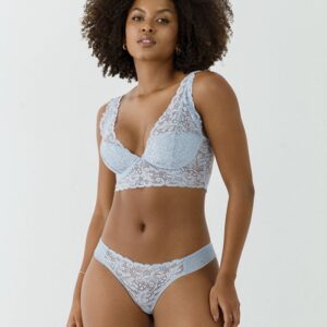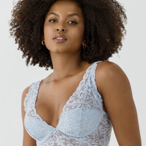 Descubra a sutileza e o conforto com o Top Bralette Melissa, confeccionado em renda com elastano para proporcionar uma experiência delicada e suave. O busto triangular possui bojo moldado que garante ajuste perfeito ao corpo com conforto. Possui aros e barnatanas. As palas traseiras largas em renda com fechamento em colchete de três níveis de regulagem asseguram um ajuste perfeito. As alças alongadas fixas com regulagens, proporcionam suporte e um toque de luxo. Completo com uma plaquinha de metal personalizada, o Sutiã combina charme sofisticado com funcionalidade.